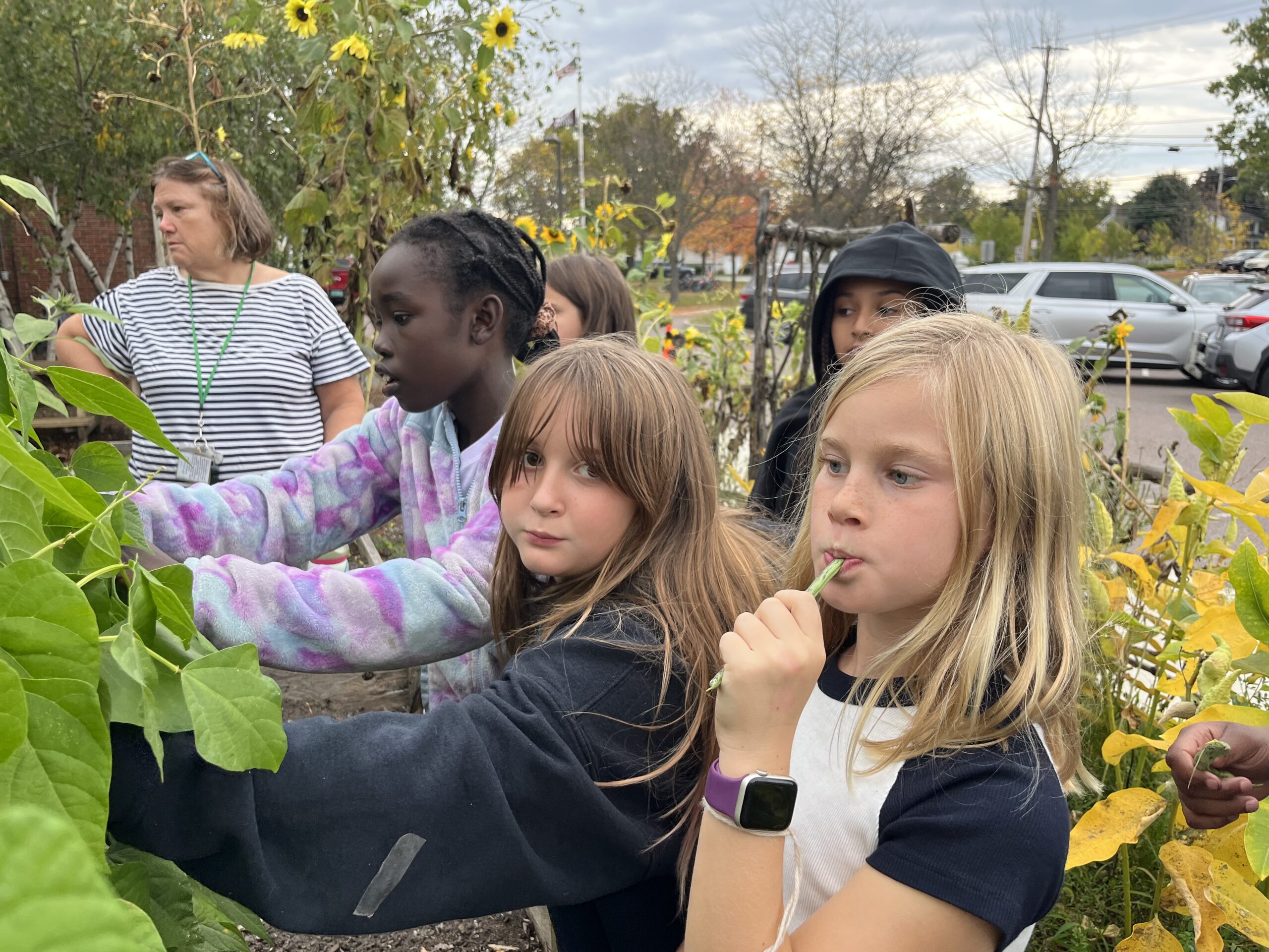 Over the past few weeks, students have been exploring the late season bounty of the Flynn School Garden. Sweet bell peppers, cucamelons, cherry tomatoes, rattlesnake pole beans, and basil have been ripe and prolific for taste-tests. Students have explored the garden through all five senses, with a particular focus on color matching with our younger students. Older students have been practicing their poetry skills writing haikus inspired by the garden and the changing seasons. There’s still more to come as we move towards putting the gardens to bed later this month and into November.